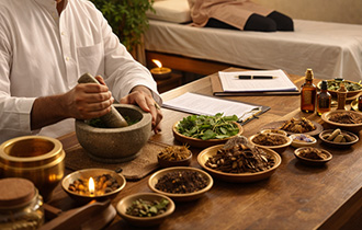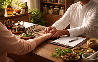 Demonstrating the ancient art of pulse diagnosis in Siddha medicine